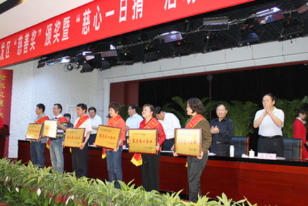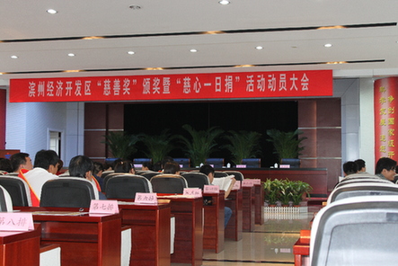 濱州傳媒網(wǎng)訊(記者郭瑩 通訊員李華)2011年5月26日上午,開發(fā)區(qū)隆重舉行2010年度“慈善獎”頒獎和2011年度“慈心一日捐”活動動員大會。會議由開發(fā)區(qū)黨工委委員、主任助理、公安分局局長張愛國同志主持,黨工委書記、管委會主任姚和民同志到會并作重要講話,會議表彰了2010年度為慈善事業(yè)做出突出貢獻的單位和個人,區(qū)黨工委委員、管委會副主任、慈善總會會長馬景澤同志接收了7家企業(yè)的捐贈,其中,福豪鋼材市場管理有限公司認捐基金200萬元,海得曲軸有限責任公司認捐基金200萬元,華晨新型建材有限公司認捐基金100萬元,中大兆華牧業(yè)科技有限公司認捐基金100萬元,金河房地產(chǎn)開發(fā)有限公司認捐基金100萬元,